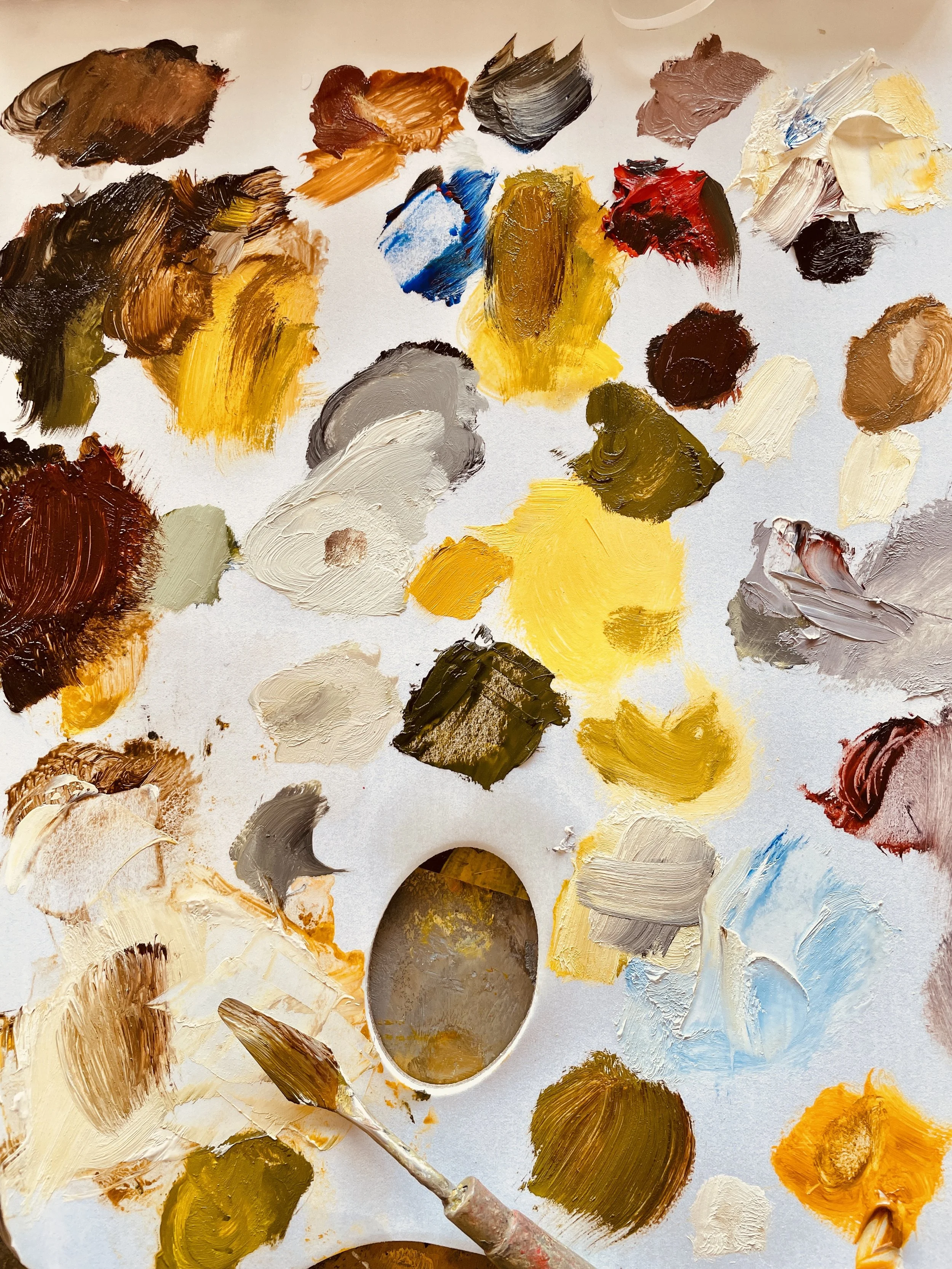 Turner (1775-1851) the wonderful british landscape painter said that he paints uncertainty, that resonates with me. Having worked mostly in a monochromatic manner for many years with charcoal dust, making marks and tones, erasing to find form and direction, sound to me like the perfect metaphor for uncertainty. Maira Kalman also made uncertainty the subject for her book where she profusely illustrated a year in her life abounding with anguish, confusion, bits of wisdom, musings, meanderings, joy and rest. I am in awe of Maira’s ability as writer and illustrator. I paint daily. Recently I started exploring a limited zorn palette in oil. Over a few months I made small works on a gel plate and reworked the printed version into small finished paintings. The gel plate provided me with courage as the initial print surprised me with marks that looked more sophisticated than what I could produce at the time. Slowly confidence grew and I have moved onto bigger surfaces. The zorn palette refers to a palette of colours attributed to the great swedish painter Anders Zorn (1860-1920). There were only four colours that he painted with, ivory black, which is a cool black and can be used as a very dark substitute for blue, titanium white, yellow and red. He mixed those masterly into the most beautiful palette. I allow myself an added colour, french ultramarine blue. We live on a very steep block on a peninsula where the sky tells continuous stories throughout the day. I can not imagine to be without the ultramarine blue, which enables me an attempt to search for the subtle blues I see displayed from my studio on the hill.